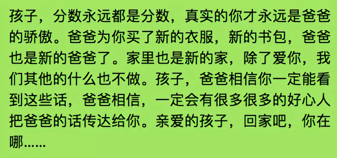 这位父亲说了这样一段话,让人深思,“我的教育方式太简单粗暴了,以前交流得少,觉得生气时,也打过孩子,但没想到这次一句话,竟让孩子离家出走了……”
