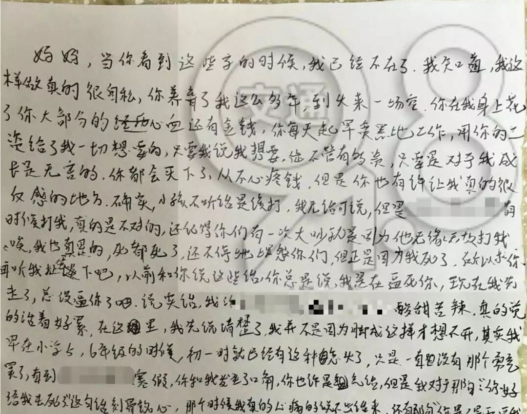 遗书中开头那句“妈妈,当你看到这些字的时候,我已经不在了......”就足以让人泪目.....